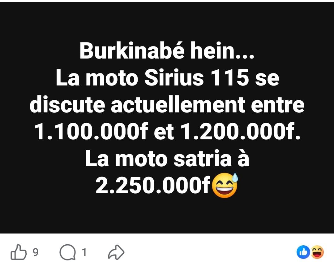 Aux vendeurs de motos au Burkina, notre message est le suivant : si on vous a fait quelque chose, il faut dire on va demander pardon. Sinon en vrai, y en a marre de cette politique du ligid zamana qui ne tient pas compte des réalités du pays ! Y en a marre de vos pleurs lorsque l'on vous prend la main dans le sac, alors que vous semblez mépriser les larmes des autres qui font pourtant de vous de gros "P.D.ZÉ" ! Y en a marre de ces prix qui gonflent et se dégonflent comme le dolo mal fermenté d'un Samo de Tougan ! On est fatigué ! Il faut vous revoir !