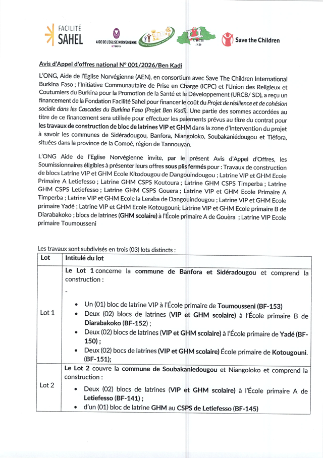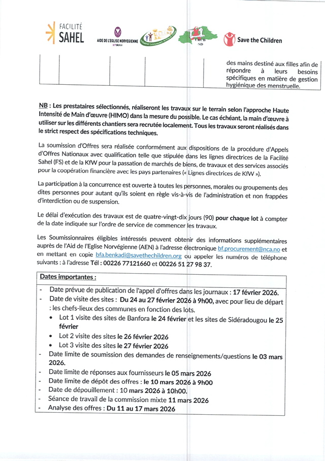 Très touchés par vos nombreuses marques de compassion, de solidarité et de soutien multiformes à leur endroit lors du rappel à Dieu le 31 janvier 2026, suivi de l'inhumation le 02 février 2026 à Koin (Nayala) de leur :