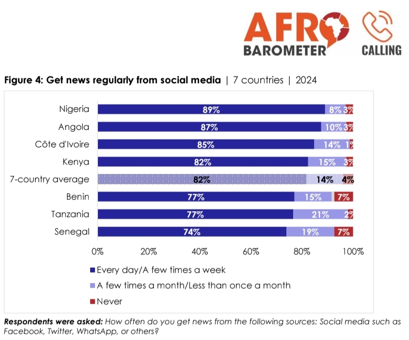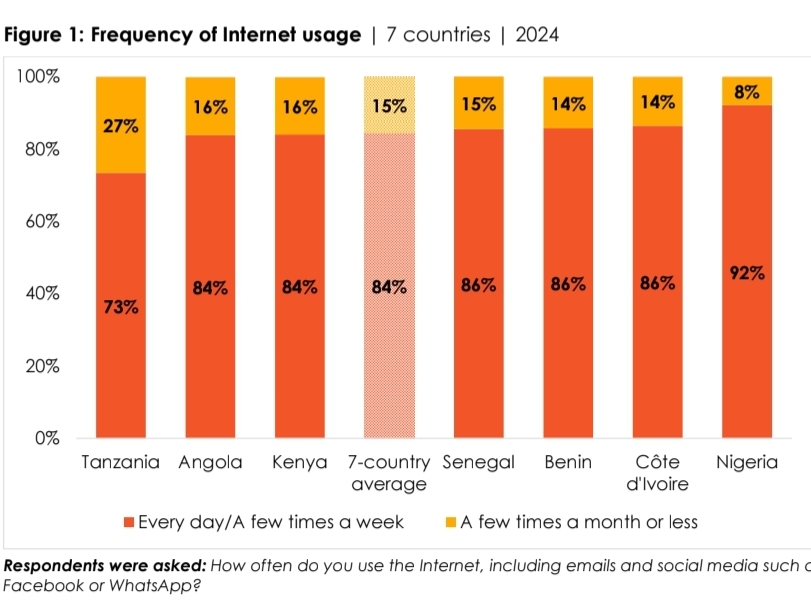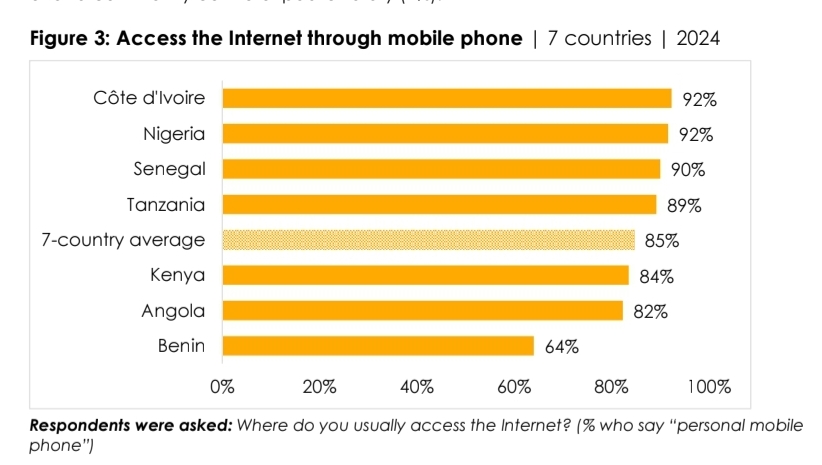 Entre ses enquêtes classiques, Afrobarometer réalise également des sondages téléphoniques plus ciblés sur des sujets émergents ou d'actualité, sous l'égide d'Afrobarometer Calling. Entre le 6 septembre et le 8 novembre 2024, ses partenaires ont interrogé des échantillons nationaux de 1.200 adultes (âgés de 18 ans et plus) possédant un téléphone mobile et déclarant consulter du contenu Internet. Ces enquêtes ont été menées en Angola, au Bénin, en Côte d'Ivoire, au Kenya, au Nigéria, au Sénégal et en Tanzanie, et portaient sur les usages numériques et la sensibilisation à la cybersécurité.