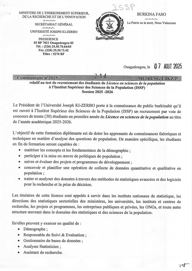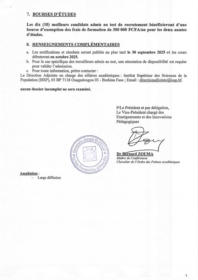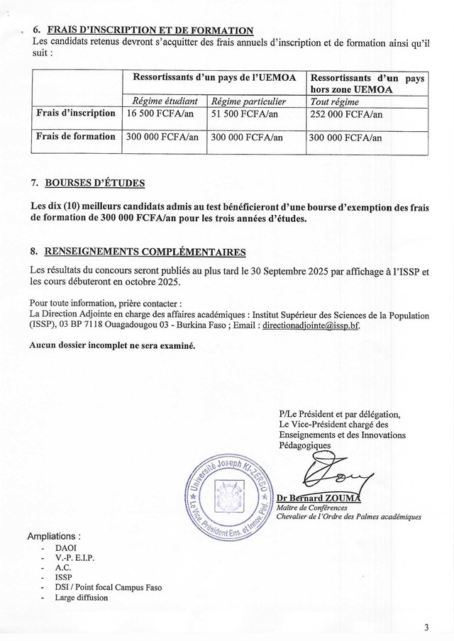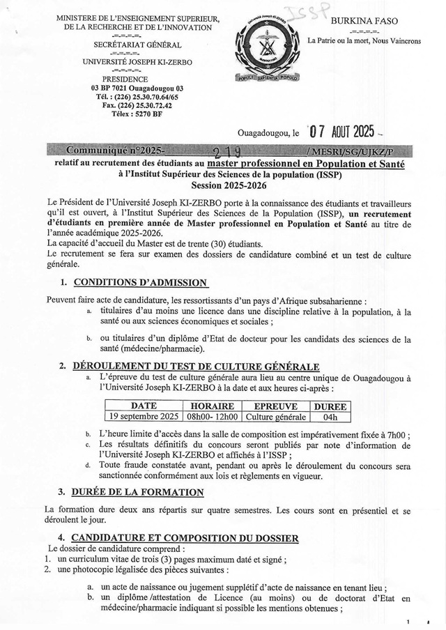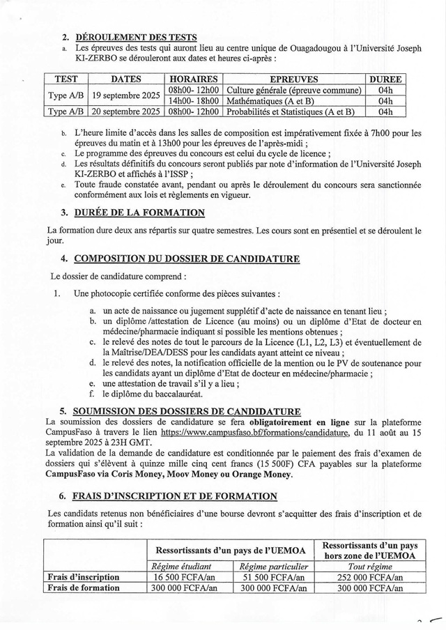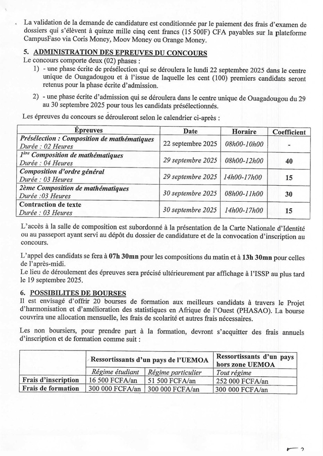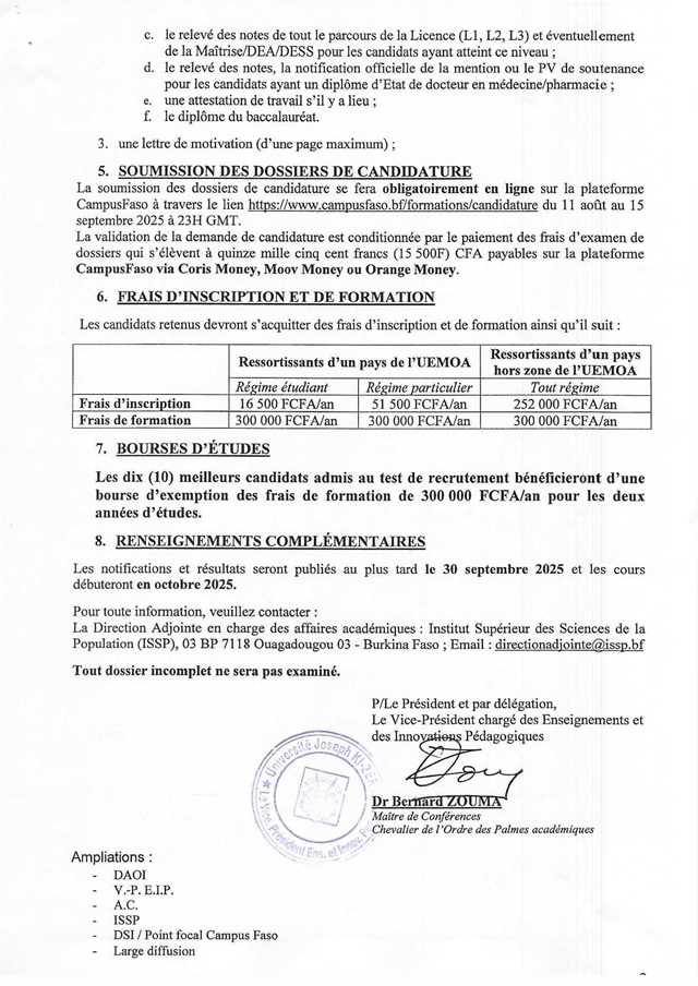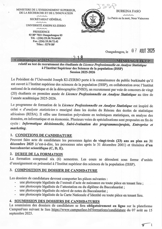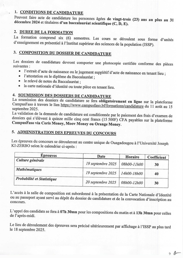 Les dossiers de candidature seront transmis sous plis fermé confidentiel au plus tard le 15 octobre 2025 à 16h TU, à Monsieur le Président du Conseil d'Administration de la Société FASO Réassurances, 01 BP 5968 Ouagadougou 01, sis au 4ème étage de l'Immeuble de la Caisse des Dépôts et d'Investissements du Burkina Faso – CDI-BF, téléphone fixe (00226) 25.45.19.25.