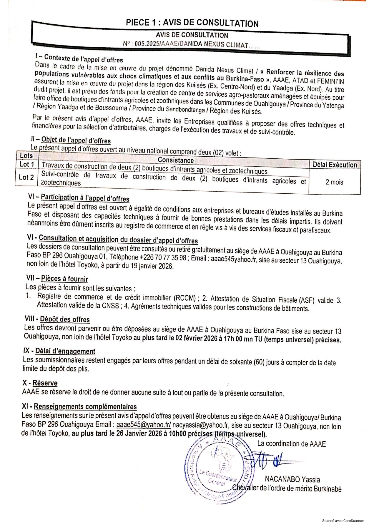 Le dossier est suivi par Ouédraogo Natewende Martin, chef de département de la valorisation de l'expertise publique, joignable au 77 87 40 04.