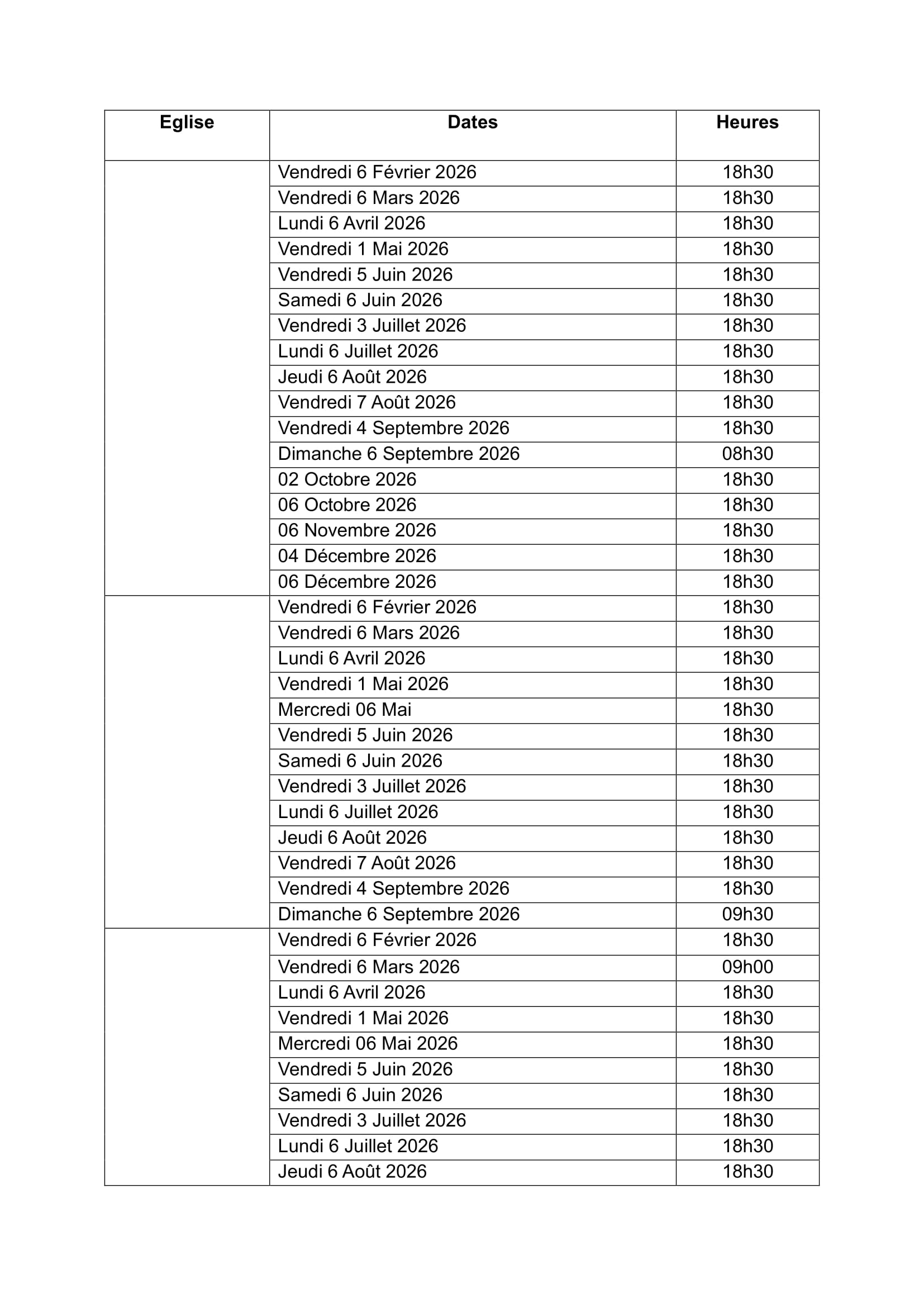 PROGRAMME DES MESSES