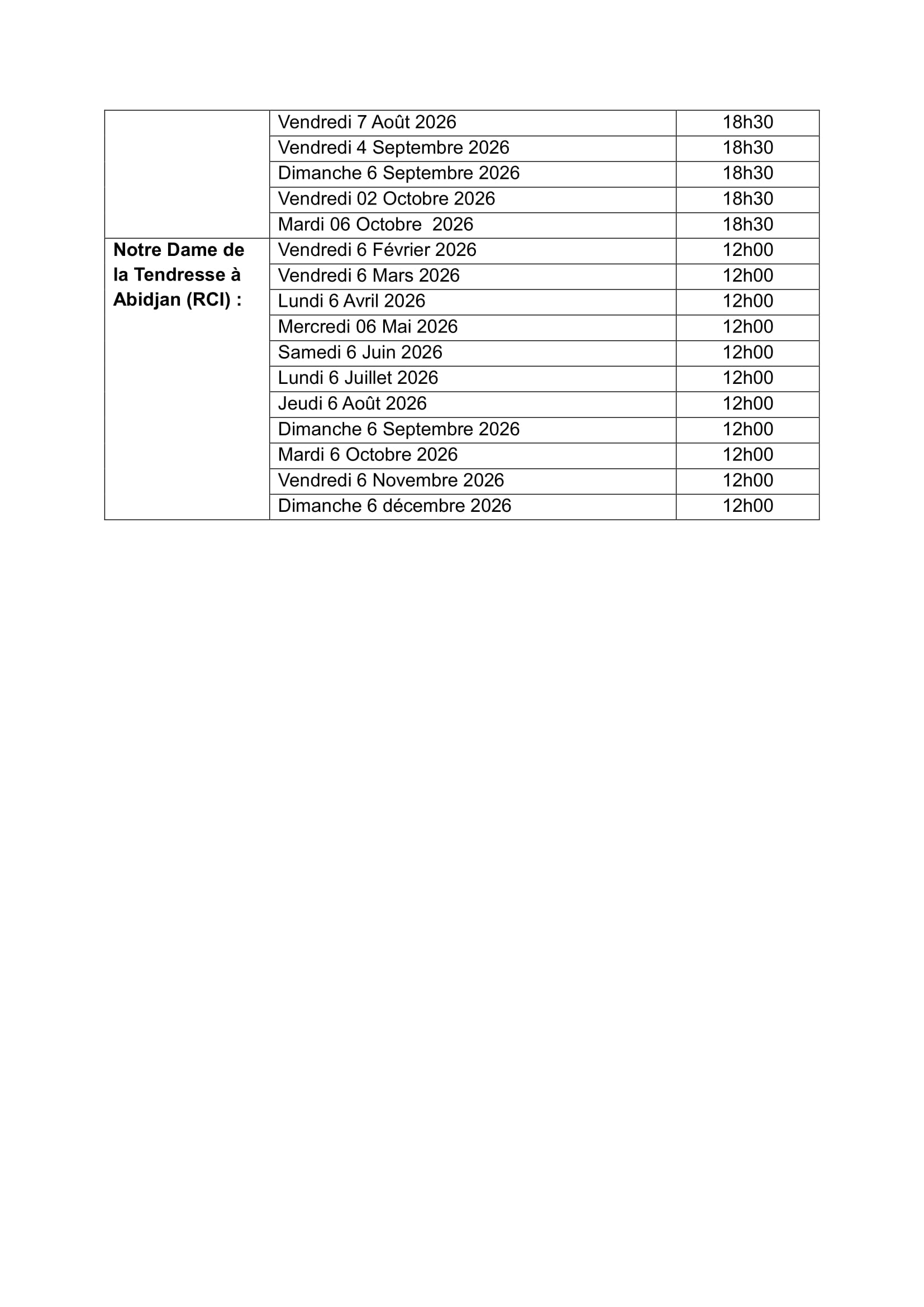 – La Chapelle du Collège de la Salle en face de la cathédrale de Ouagadougou (messe Dagara à 10h30mn) les derniers dimanches des mois de janvier-février-mars-avril-mai et juin.