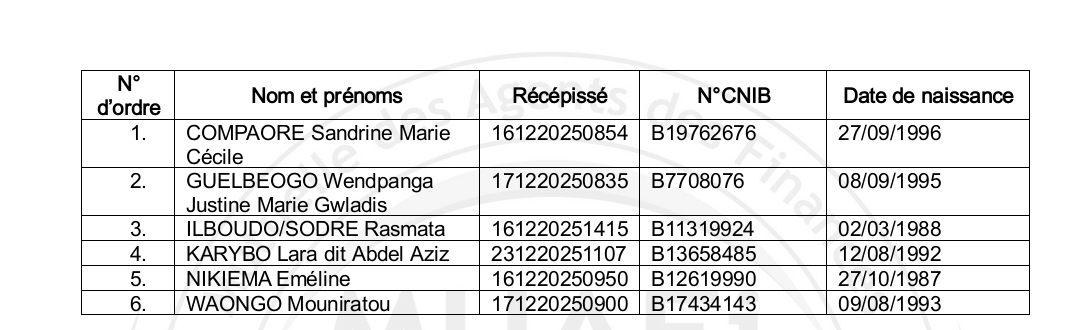 Les candidats présélectionnés sont informés que la phase pratique et l'entretien oral se tiendront le dimanche 25 janvier 2026 à l'Institut des Finances Publiques du Burkina ‘IFPB) ex ENAREF sis à Wayalghin à Ouagadougou.