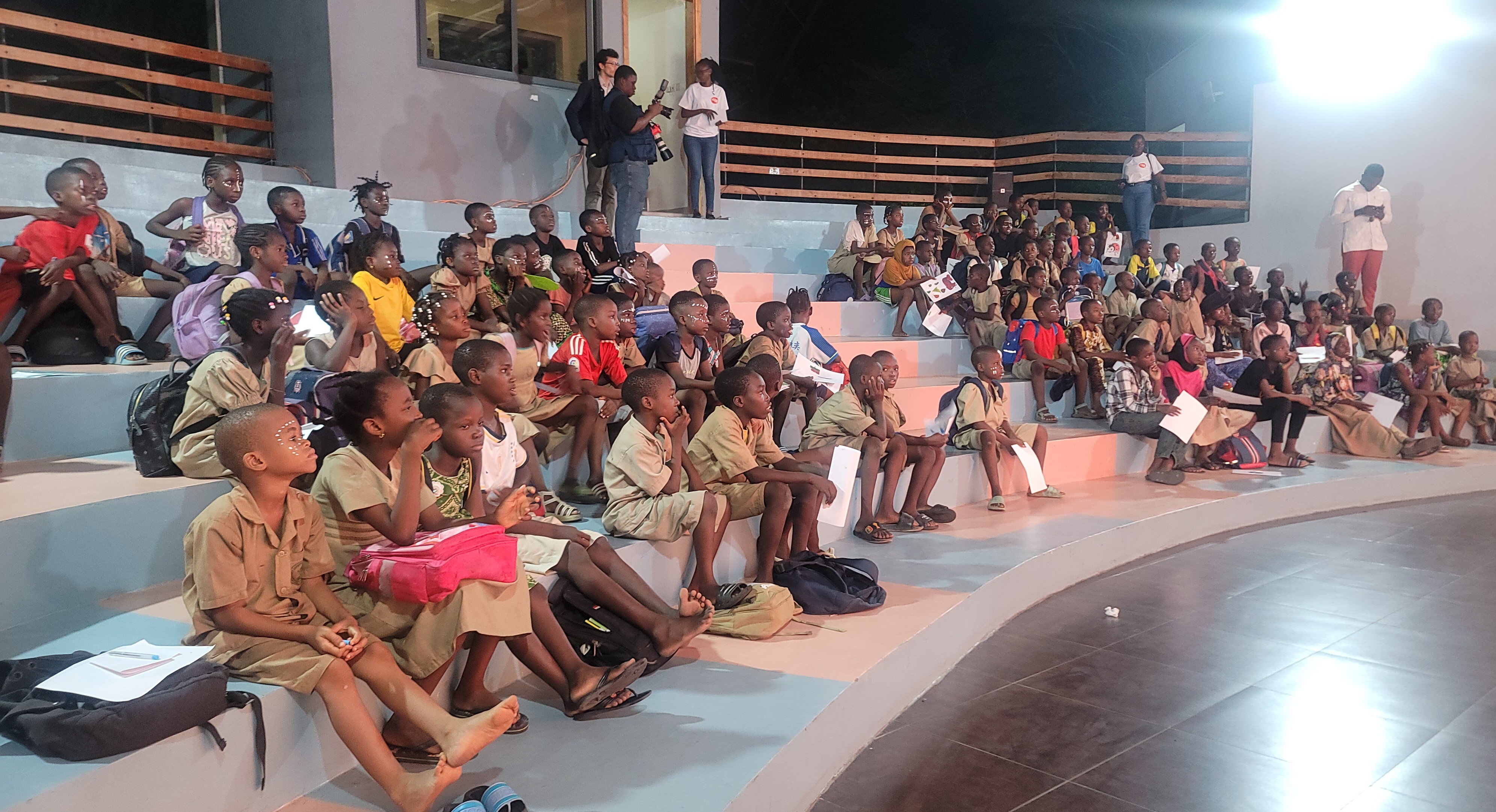 Après les ateliers, place à la projection. L'amphithéâtre du Centre Eya s'est transformé en salle de cinéma, accueillant les enfants dans de bonnes conditions. Pour cette première au Bénin, des dessins animés issus d'Afrique et du monde francophone ont été projetés tels que Roi Keïta, Kassa le messager ; à la recherche du légume star, ainsi que la série d'animation ‘'Les Sisters'' très appréciée du jeune public.