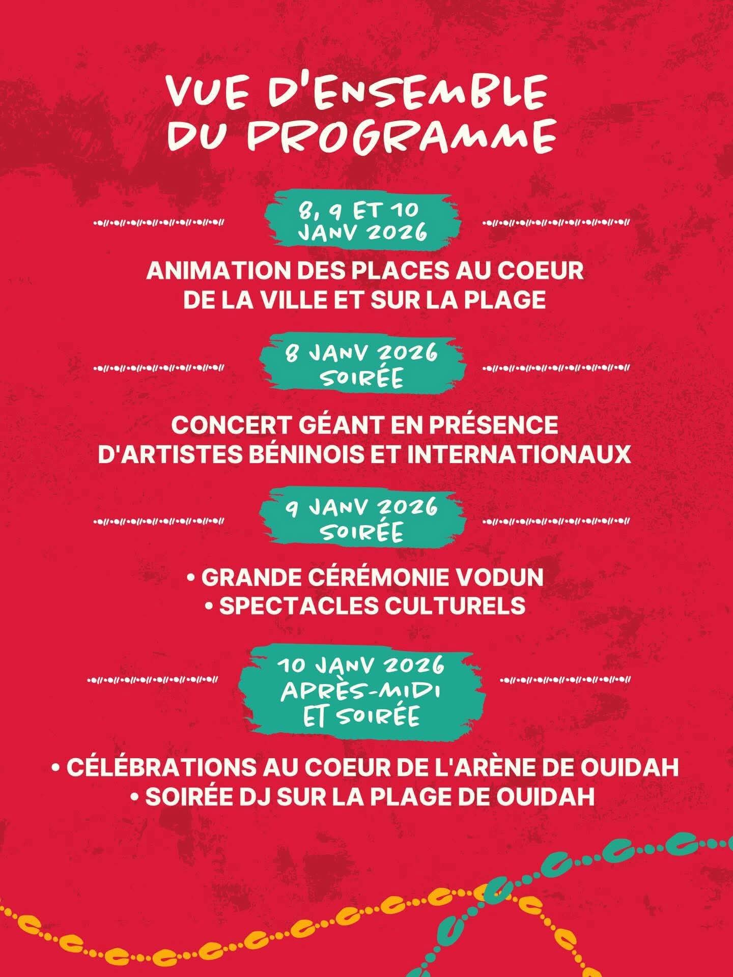 Dans une publication sur sa page Facebook, accompagnée du programme officiel en photo, le chef de l'État a confirmé que les Vodun Days démarrent « dès ce jeudi 8 janvier 2026 et ce sur 3 jours ».