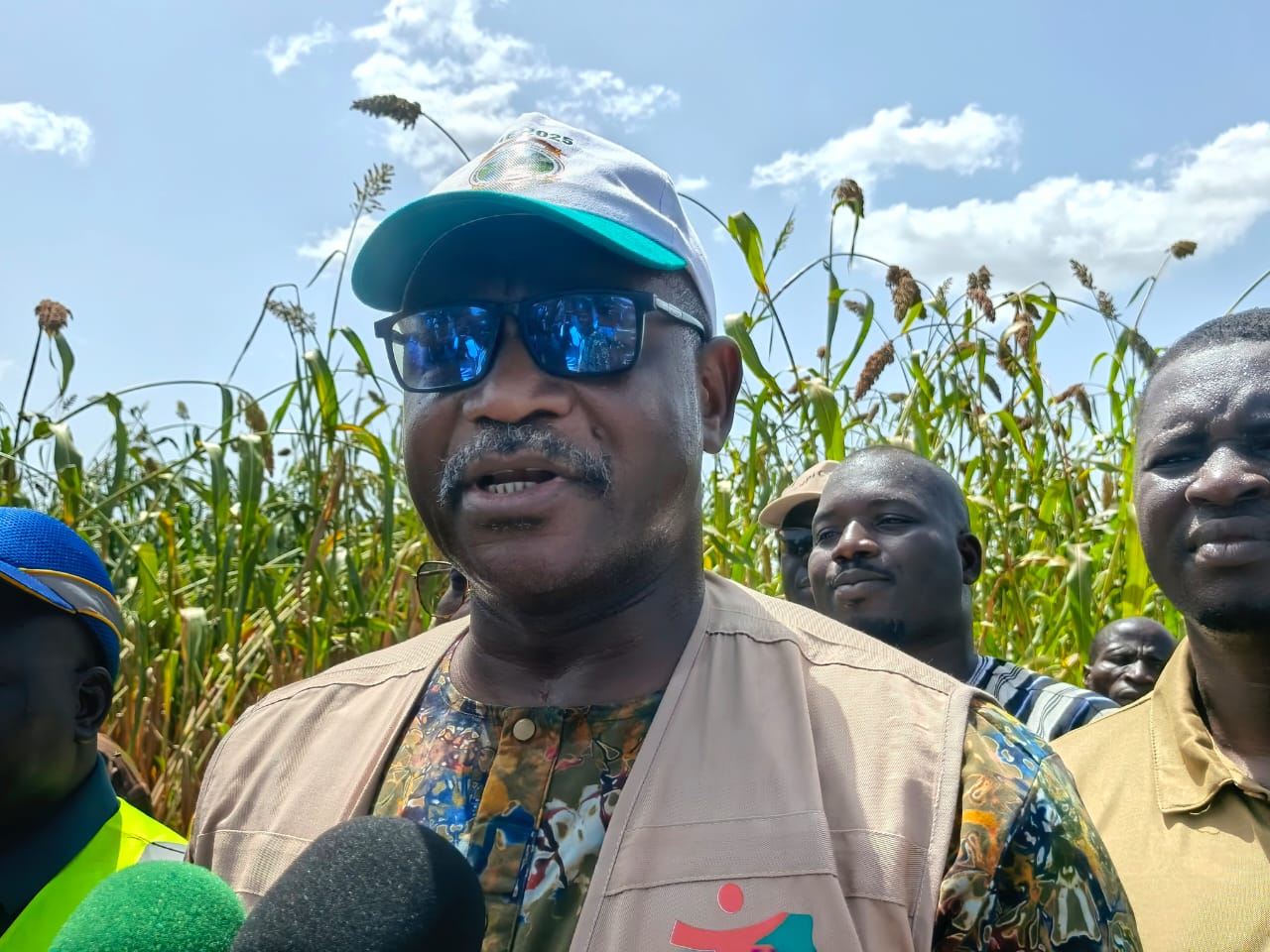 Le gouverneur de la région des Koulsé a poursuivi le lundi 13 octobre 2025, sa tournée entamée la veille en vue de constater l'état d'avancement de la campagne agricole. Pour cette deuxième journée, le colonel-major Blaise Ouédraogo et sa délégation ont visité au total trois sites. Il s'agit de deux bas-fonds rizicoles dans les villages de Ziga et de Kossin ainsi qu'un champ de sorgho de 5 hectares. La particularité du dernier site visité, est que la production a été faite sur une terre dégradée, qui a été récupérée avec l'appui du projet résilience climatique dans le bassin du Nakambé (RECLIM). Le champ a fière allure et la récolte s'annonce bonne.