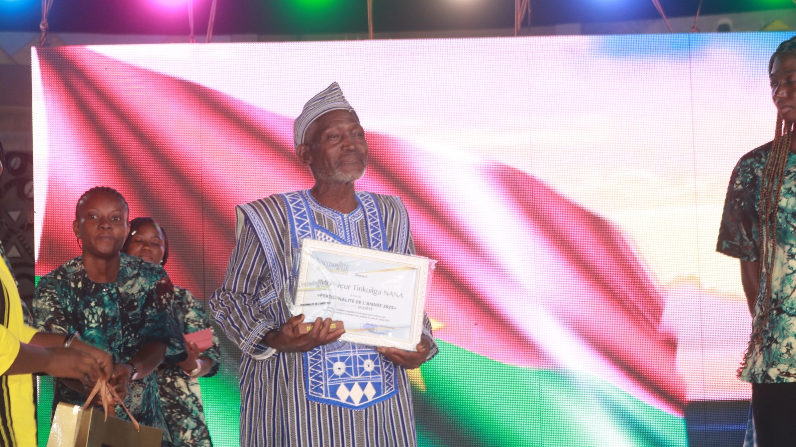 Tinkuilga Nana, le vieux qui avait fait la Une de l'actualité pour son don d'un sac de ciment à Faso MêboPar ailleurs, cette cérémonie, qui a mobilisé plus de 300 invités de tout rang, s'est tenue surtout en présence des autorités du pays. En rappel, la cérémonie, placée sous le patronage du président de l'Assemblée législative de transition (ALT), représenté par son 4ᵉ vice-président, Daouda Diallo, a été présidée par le ministre en charge de la communication, Gilbert Ouédraogo, sous le marrainage de la directrice générale de Coris Bank International, Gisèle Gumedzoe.