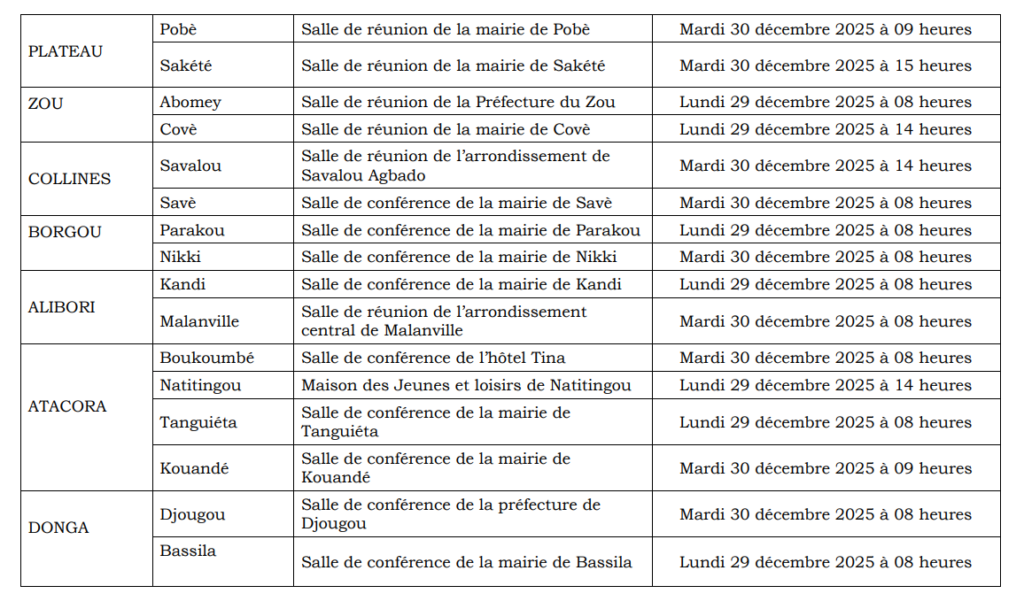 Les candidats aux postes de délégués de la Cour dans les arrondissements, les communes et les départements peuvent consulter la liste des personnes retenues sur le site https://courconstitutionnelle.bj, ou dans les mairies.