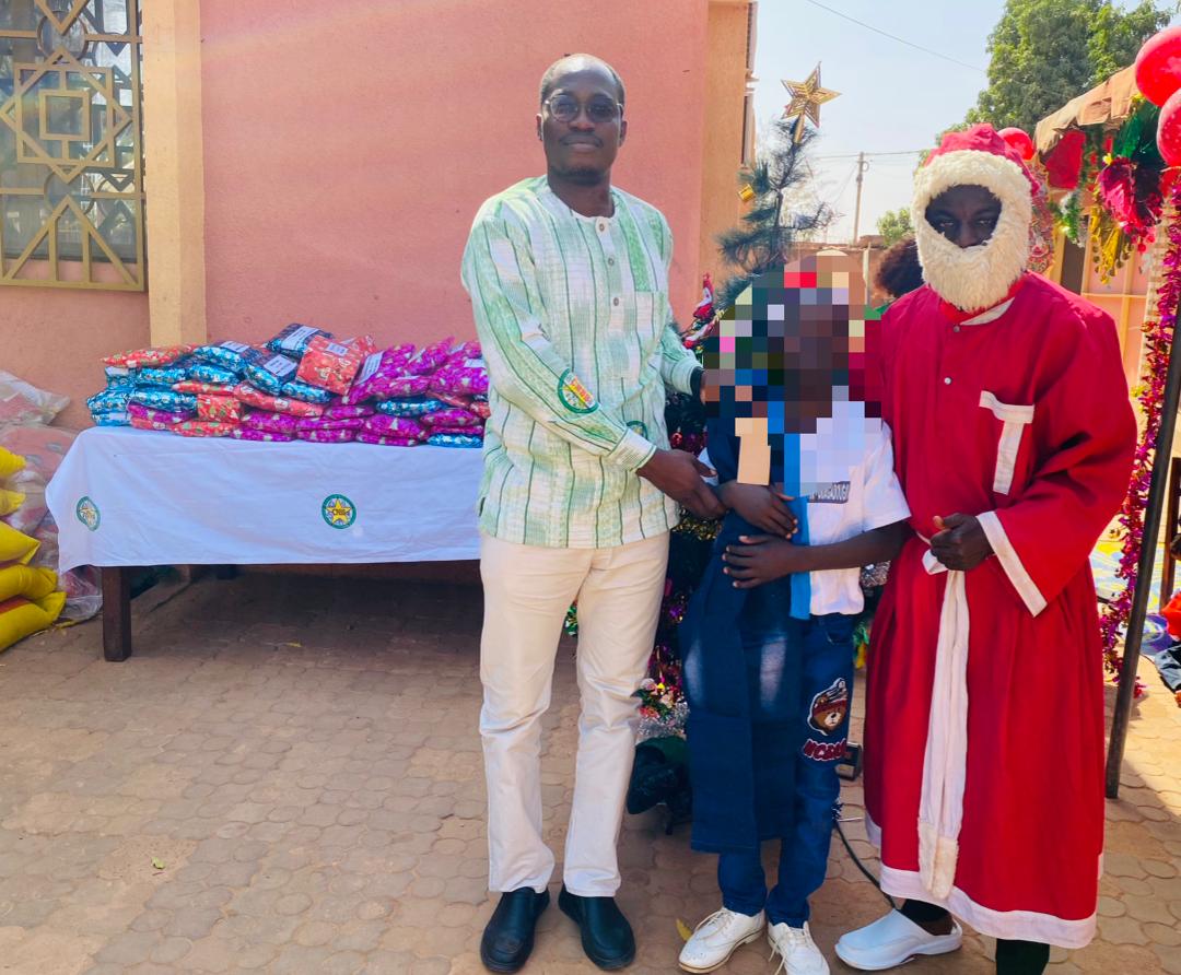 Remise symbolique de dons.Au-delà du caractère festif, cet arbre de Noël a été une occasion de communion, de sourire et d'espoir pour les enfants accueillis à l'Hôtel maternel. Sibiri Gansonré, après avoir souhaité la bienvenue aux invités, a rappelé la mission humanitaire de sa structure : « L'Hôtel maternel est une structure de référence qui accueille des enfants vulnérables âgés de 0 à 15 ans, parfois confrontés à des situations très délicates, dont certains vivent avec des handicaps nécessitant une prise en charge spécifique. »
